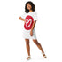 Introducing the T-shirt dress, a versatile and comfy addition to your wardrobe that is perfect for any occasion. Made from a smooth and stretchy fabric blend of 96% polyester and 4% spandex, this dress offers a chic and stylish look with its comfortable oversize fit. The lowered armhole, widened sleeve, and drop shoulder design provide a casual yet trendy vibe that can be dressed up or down effortlessly.